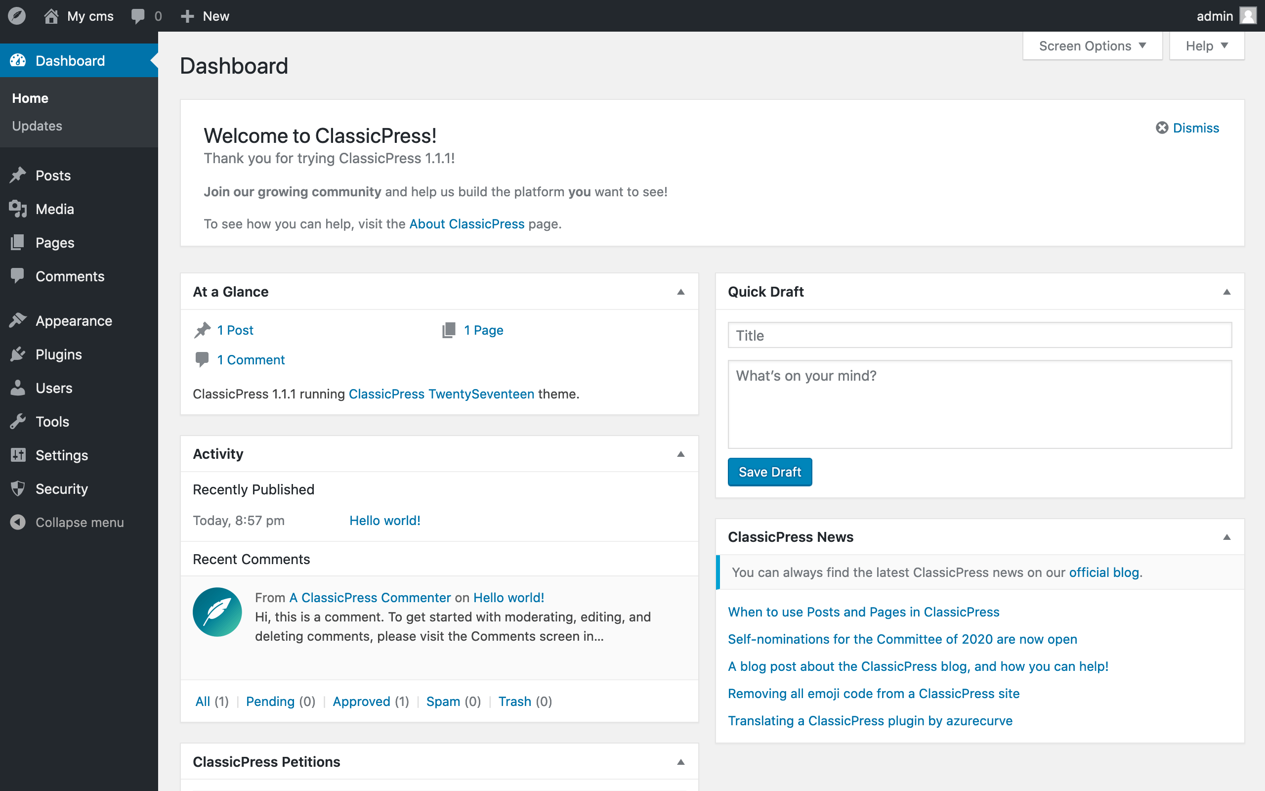 ClassicPress is a community-led open source content management system and a fork of WordPress that preserves the classic TinyMCE editor as the default option. We believe that when we combine careful, deliberate planning with the insight and collective wisdom of the ClassicPress community, we will ensure the success of ClassicPress for many years to come. Check out our roadmap to learn more. We have an active and growing community of users from many different backgrounds. Whether you are a developer, designer, business owner, or blogger, the ClassicPress Forums are where you can discuss all things ClassicPress. Add your voice to the conversation!
