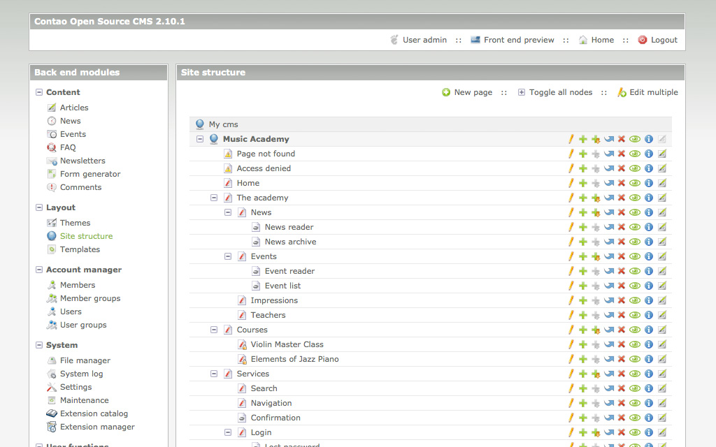 ContaoContao is an open source content management application. Contao was formerly known as TYPOlight. ![]() Contao is an open source content management system (CMS) for people who want a professional internet presence that is easy to maintain. The state-of-the-art structure of the system offers a high security standard and allows you to develop search engine friendly websites that are also accessible for people with disabilities. Furthermore, the system can be expanded flexibly and inexpensively. Easy management of user rights, the Live Update Service, the modern CSS framework and many already integrated modules (news, calendar, forms, etc.) have quickly made Contao one of the most popular open source content management systems on the market.