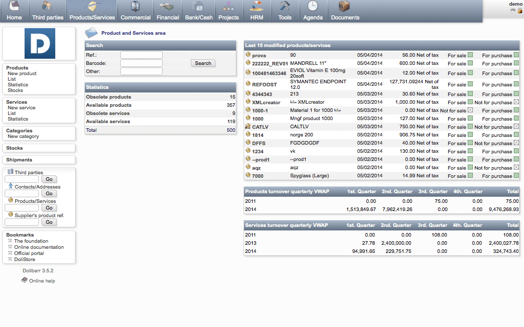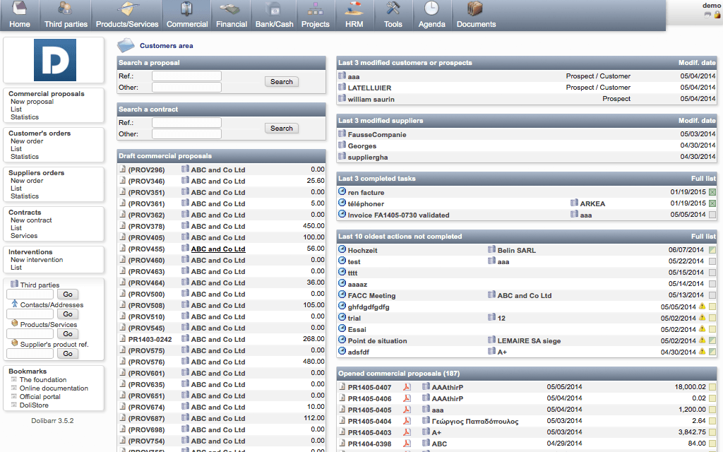 DolibarrDolibarr is an open source enterprise resource planning (ERP) and customer relations management (CRM) application. Dolibarr was initially released in 2003. ![]() Dolibarr is an open source, free software package for small and medium companies, foundations or freelancers. It includes different features for enterprise resource planning (ERP) and customer relationship management (CRM) but also other features for different activities. Dolibarr is multi-user, with several permissions levels for each feature, and Dolibarr is very user friendly.