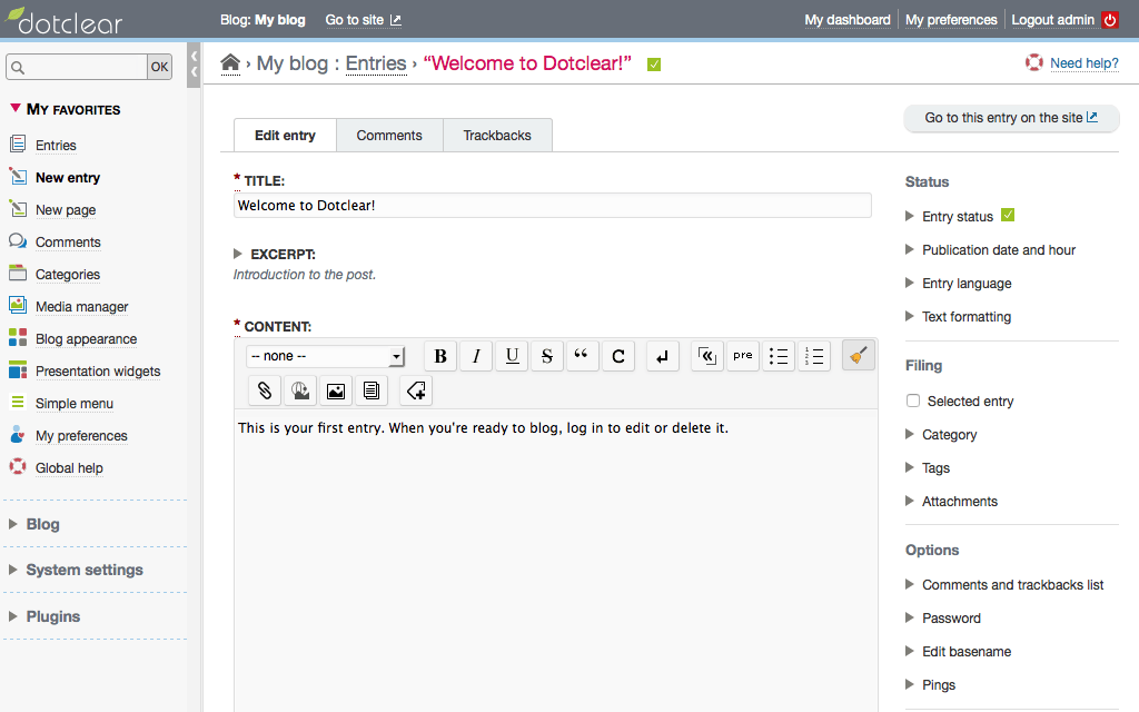 DotclearDotclear is an open source blog application. Dotclear was initially released in 2003. ![]() Dotclear is an open-source web publishing software. Take control over your blog!