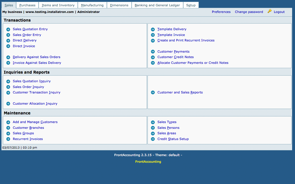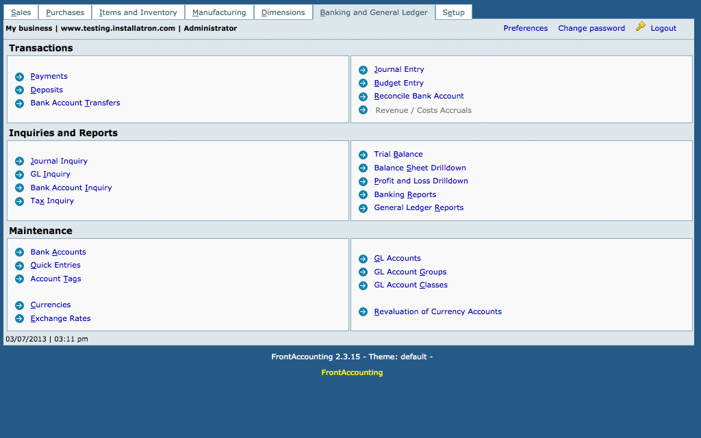 FrontAccountingFrontAccounting is an open source accounting application for small and medium businesses. Forked from webERP in 2007, FrontAccounting has been downloaded over 100,000 times. ![]() FrontAccounting is a simple but powerful system for the entire ERP chain. The software can be used as a free alternative to QuickBooks.