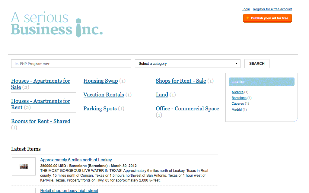 OsclassOSClass is an open source classified advertisement application. Initially released in 2011, OSClass is growing rapidly with over 17,000 downloads each month. ![]() OSClass is an application that allows you to quickly create and manage your own free classifieds site. Using this application, you can provide free advertising for items for sale, real estate, jobs, cars. Hundreds of free classified advertising sites are using OSClass.