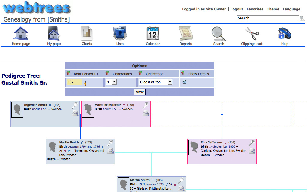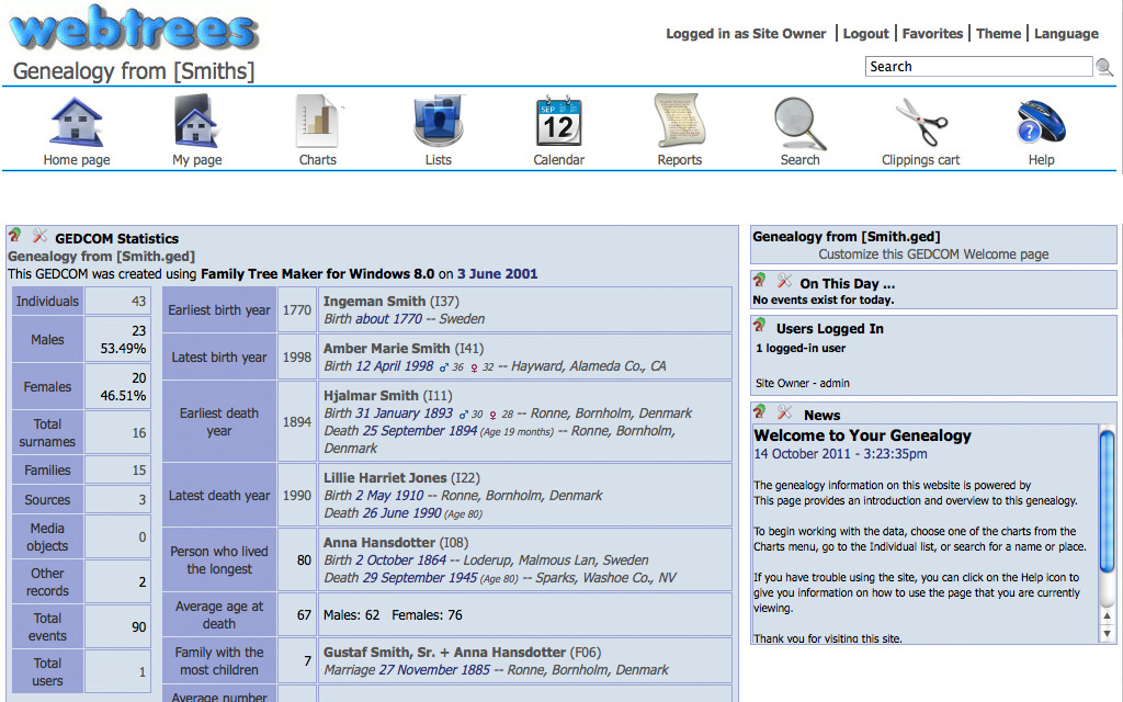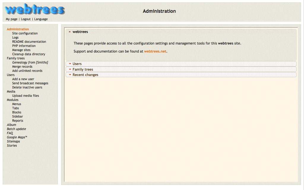 webtreeswebtrees is an open source genealogy application. webtrees forked from PhpGedView in 2010. ![]() webtrees is a genealogy program which allows you to view and edit your genealogy on your website. webtrees works from standard GEDCOM files, and is therefore compatible with every major desktop application. Furthermore, it has full editing capabilities, full privacy functions, supports multimedia like photos and document images, and has tools to simplify the process of collaborating with others working on your family tree.