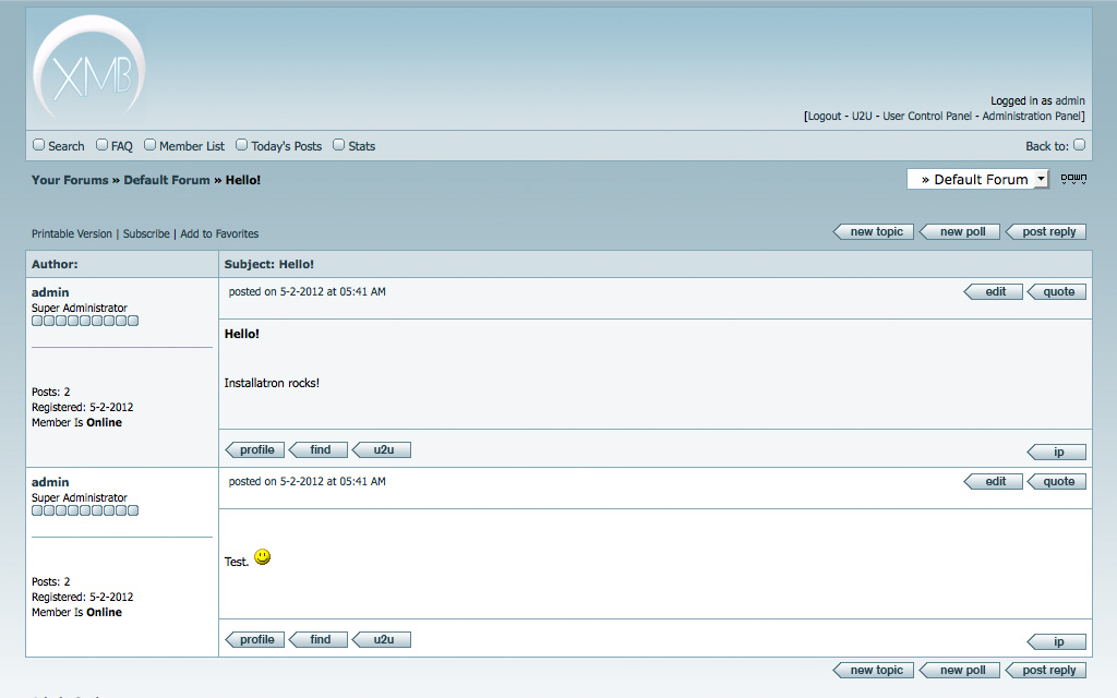XMB ForumXMB Forum is an open source forum application. XMB Forum was initally released in 2001. ![]() XMB Forum allows you to build, manage, and promote your online community.